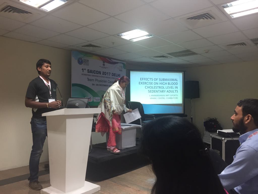 2. EFFECTS OF SUBMAXIMAL EXERCISES ON BLOOD CHOLESTEROL LEVEL IN SEDENTARY ADULTS – SAICON, DELHI in December 2017 and at AVINASHILINGAM UNIVERSITY in February 2018.